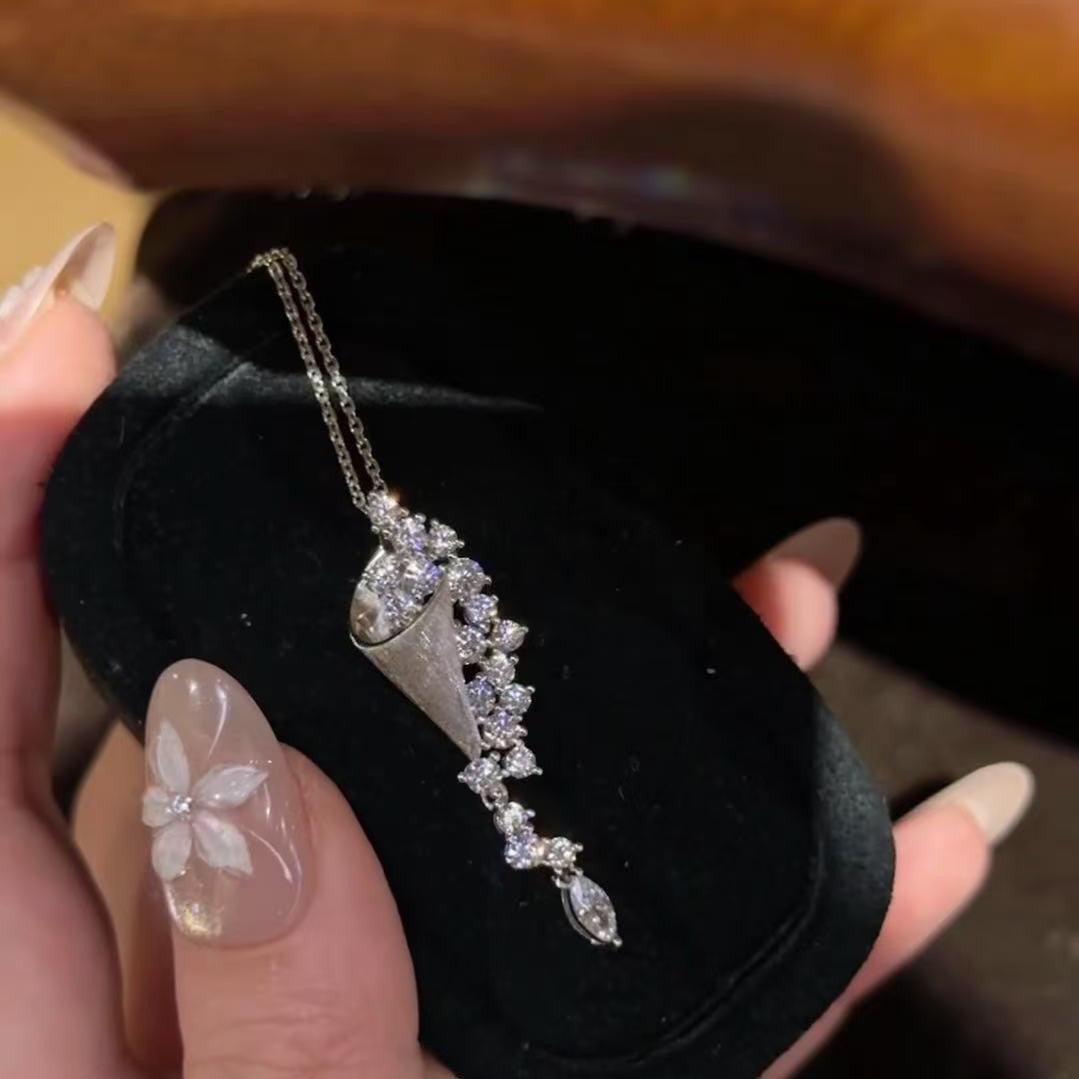Brushed Craft High Carbon Diamond Galaxy Full Diamond Hourglass Necklace French Retro Sparkling Diamond Collarbone Chain Light Luxury Simple Jewelry
