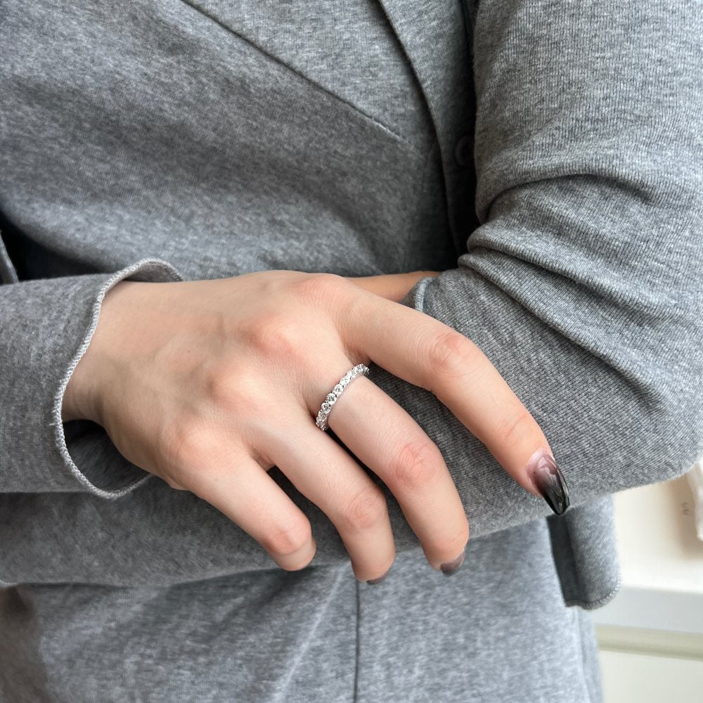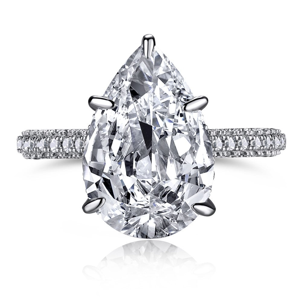 S925 Sterling Silver Ring Inlaid with Pink Water Drop Heart Zircon Ring Row Diamond Ring Pink Diamond Ring