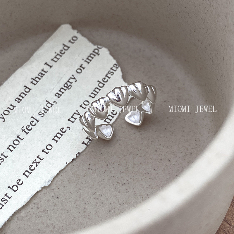 S925 Sterling Silver Three-Dimensional Heart Ring for Women Basic Versatile High-End Heavy Craft Heart-Shaped Index Finger Ring