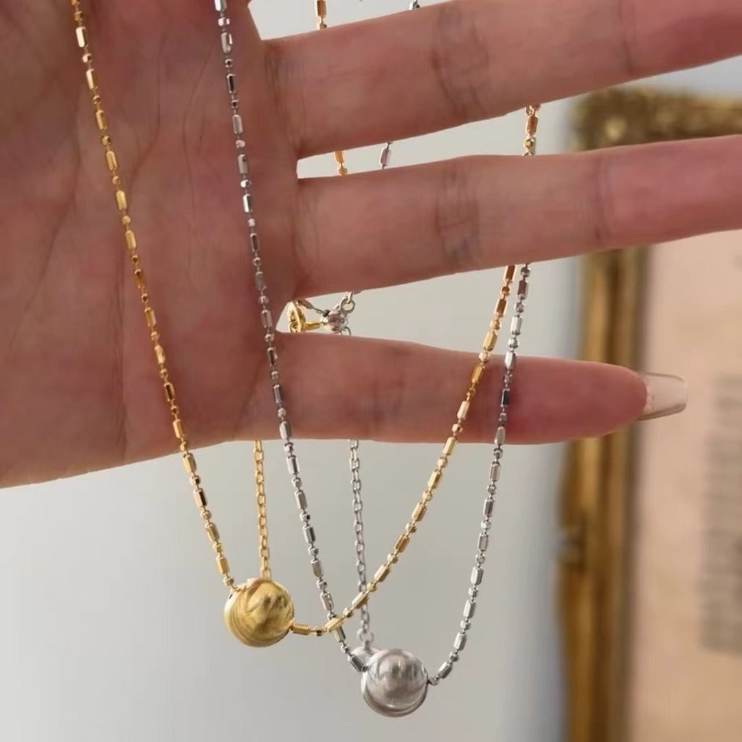 Pure Silver S925 Real Gold Plated Retractable Push-Pull Cat Eye Bead Necklace Clavicle Chain Light Luxury High-End Exquisite
