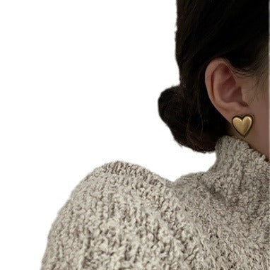 Sterling Silver S925 Vintage Gold Heart Stud Earrings Antique Craftsmanship Mid-century Style High-end Three-dimensional Peach Heart Earrings for Women