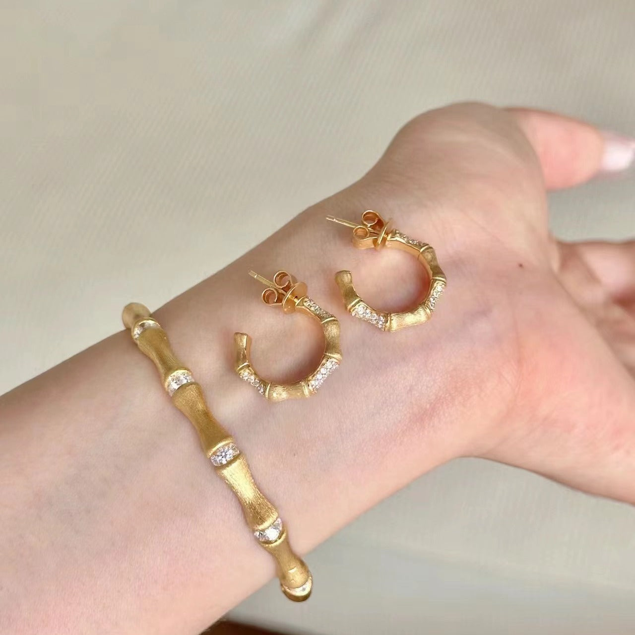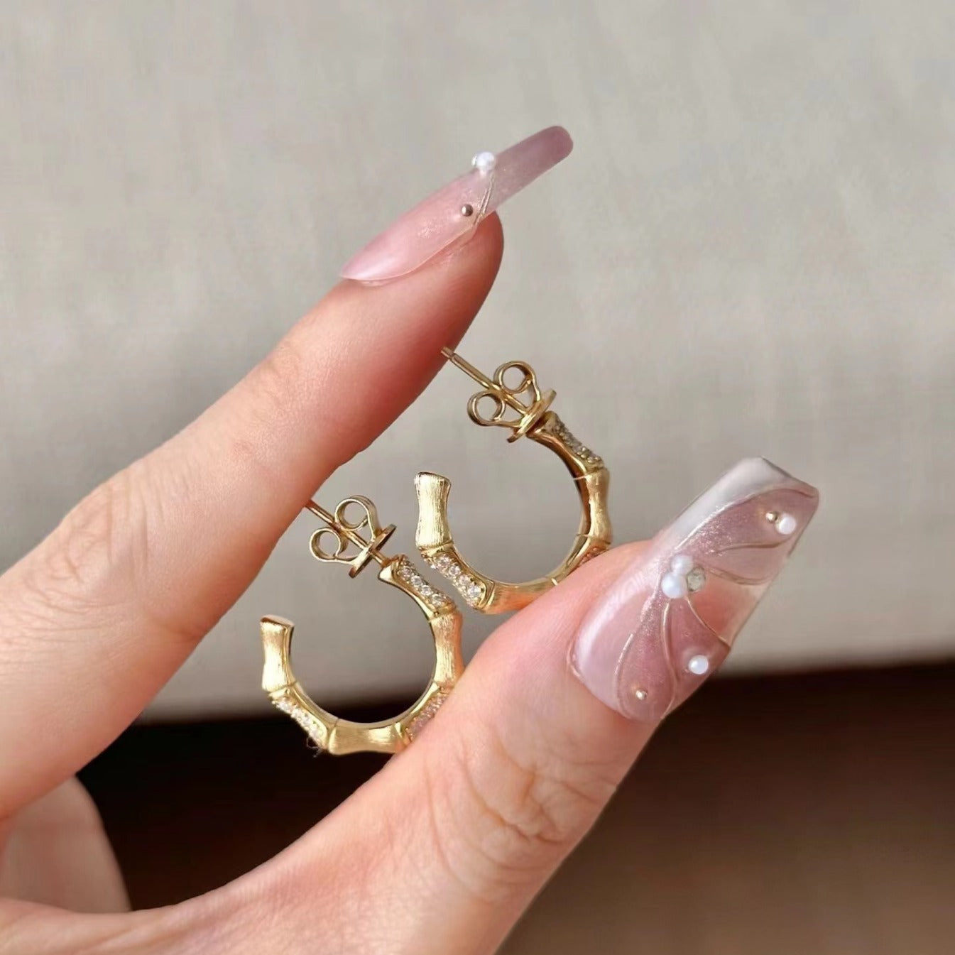 Italian Vintage Brushed Light Luxury High-End Jewelry 925 Sterling Silver Brushed Craft Forged Bamboo Earrings Studs
