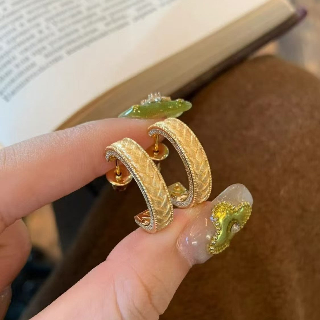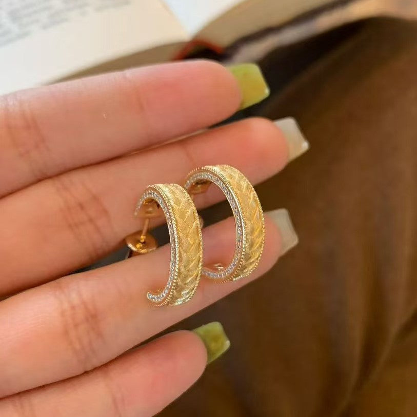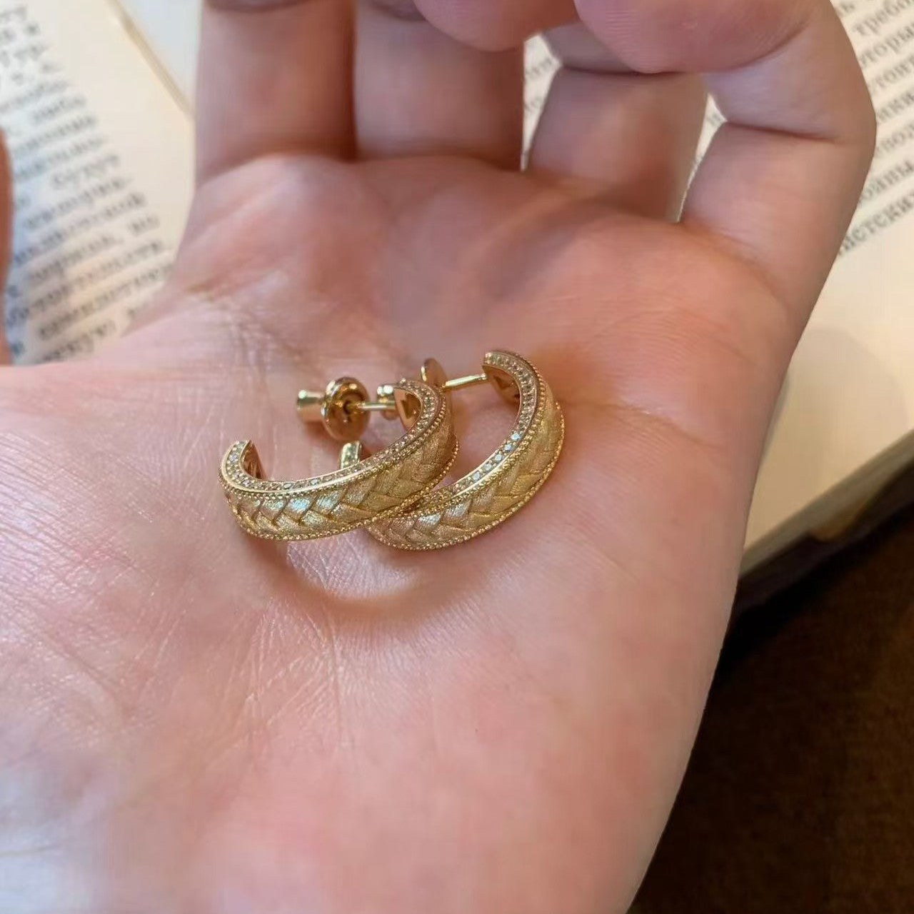 Italian Vintage Brushed Light Luxury Row Diamond Wheat Spike Earrings Retro Light Luxury High-end Design Sense Exquisite Fashion Versatile
