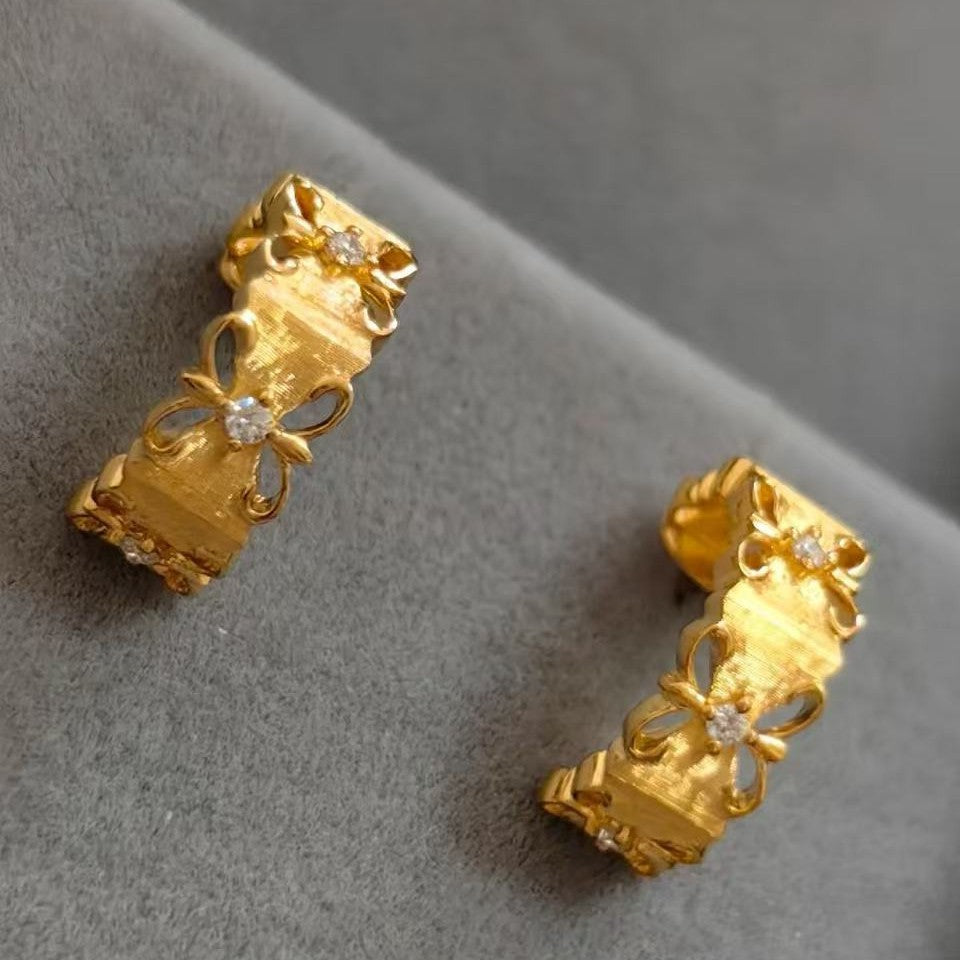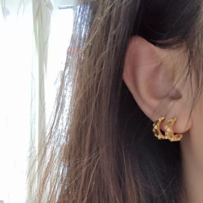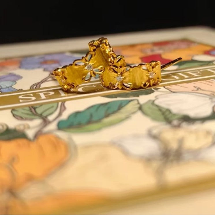 S925 Sterling Silver Vintage Commuter Iris Brushed Earrings Niche High-end Light Luxury Ear Jewelry