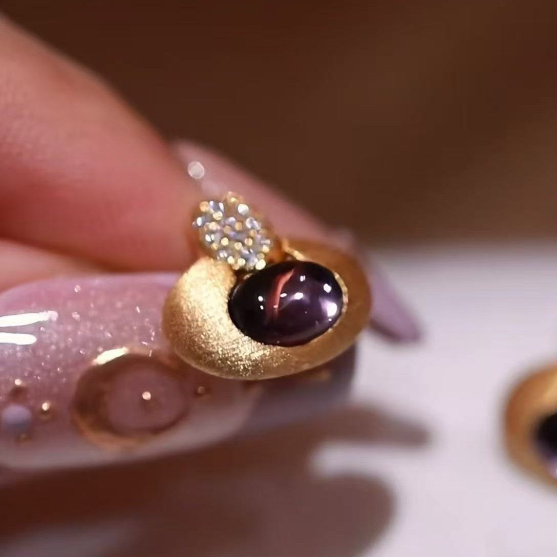 Sterling Silver S925 Brushed Craft Amethyst Earrings Light Luxury Vintage Exquisite Versatile Elegant New Geometric Earrings