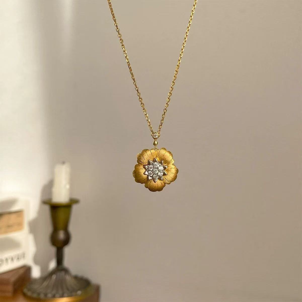 Pure Silver S925 Brushed Craft Color Electroplated Wealth Flower Pendant Necklace Fashion Simple