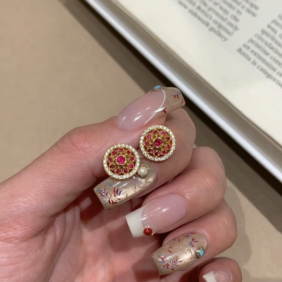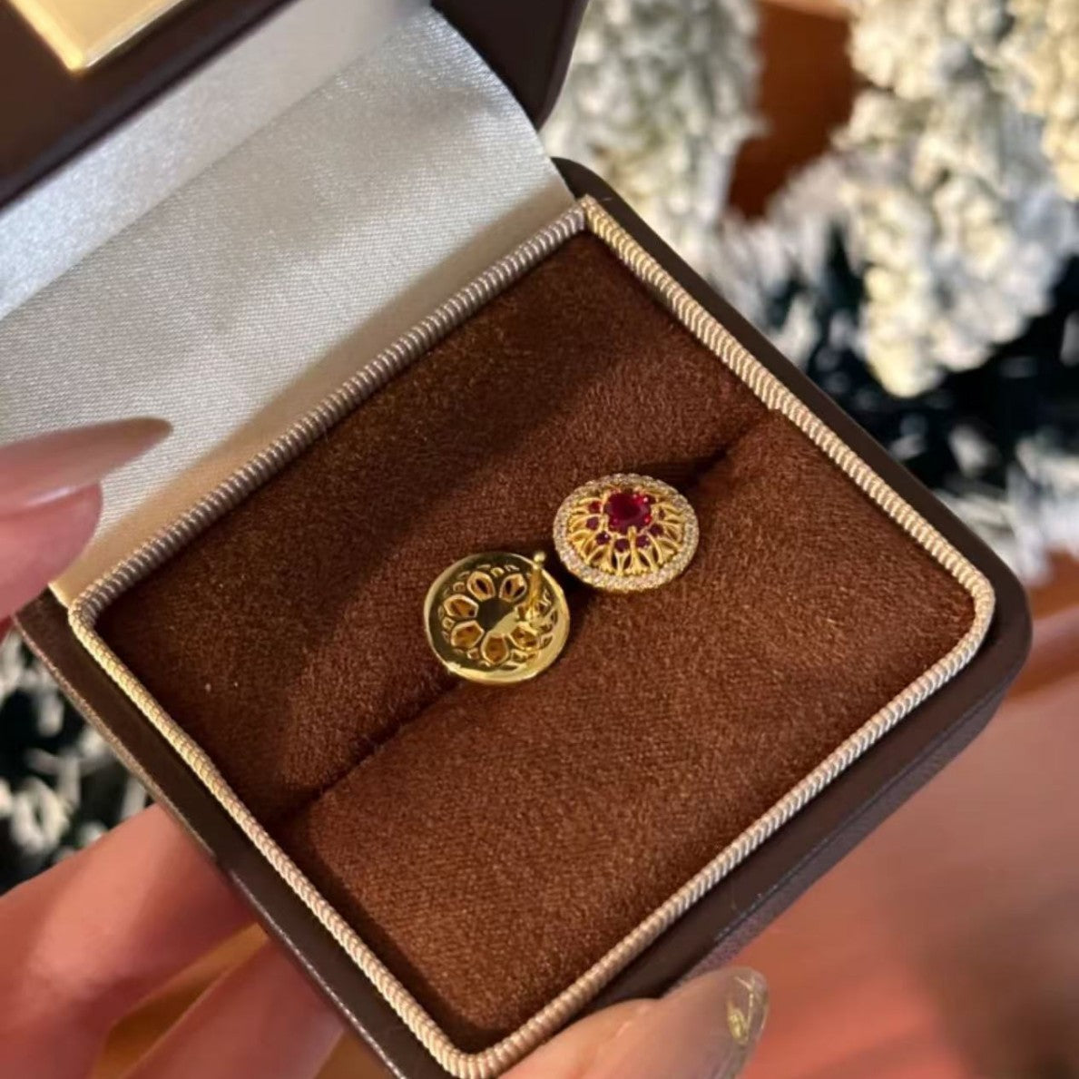 Pure Silver S925 Rose Flower Window Red Gemstone High Carbon Diamond Earrings High-end Versatile