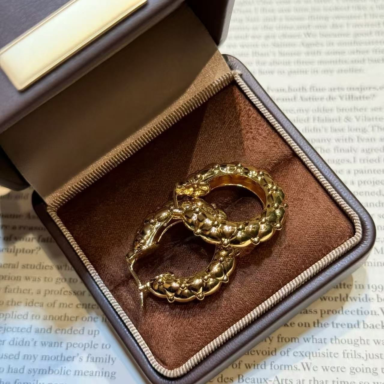Sterling Silver S925 Vintage Diamond Pattern Personality Hoop Earrings Light Luxury High-end Niche Temperament Earrings