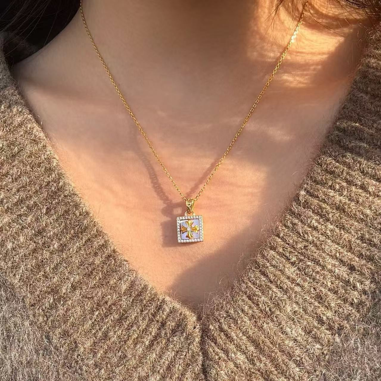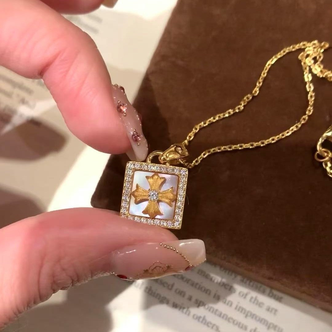 Brushed Craft Cross Necklace Full Diamond Cross Flower Light Luxury Niche Design High-end Clavicle Chain Simple