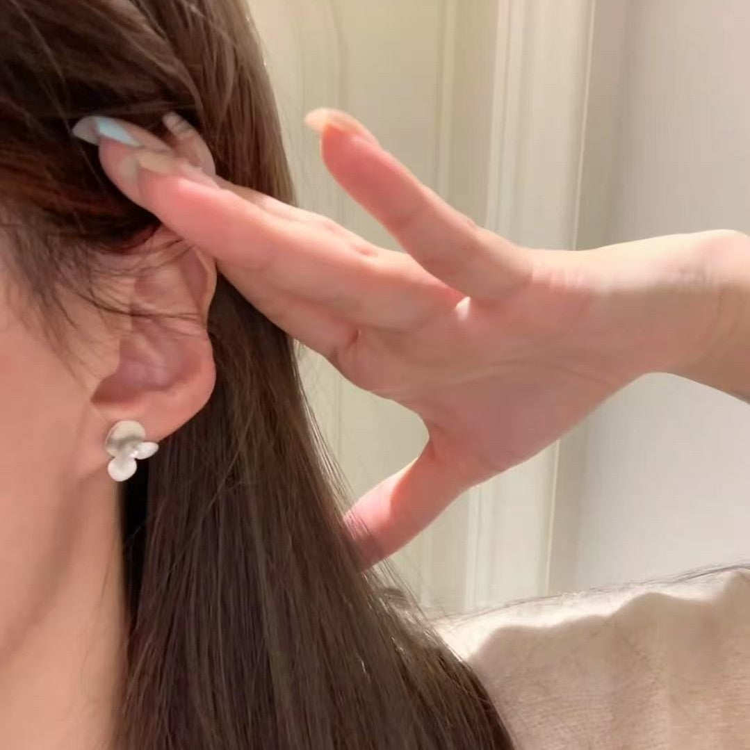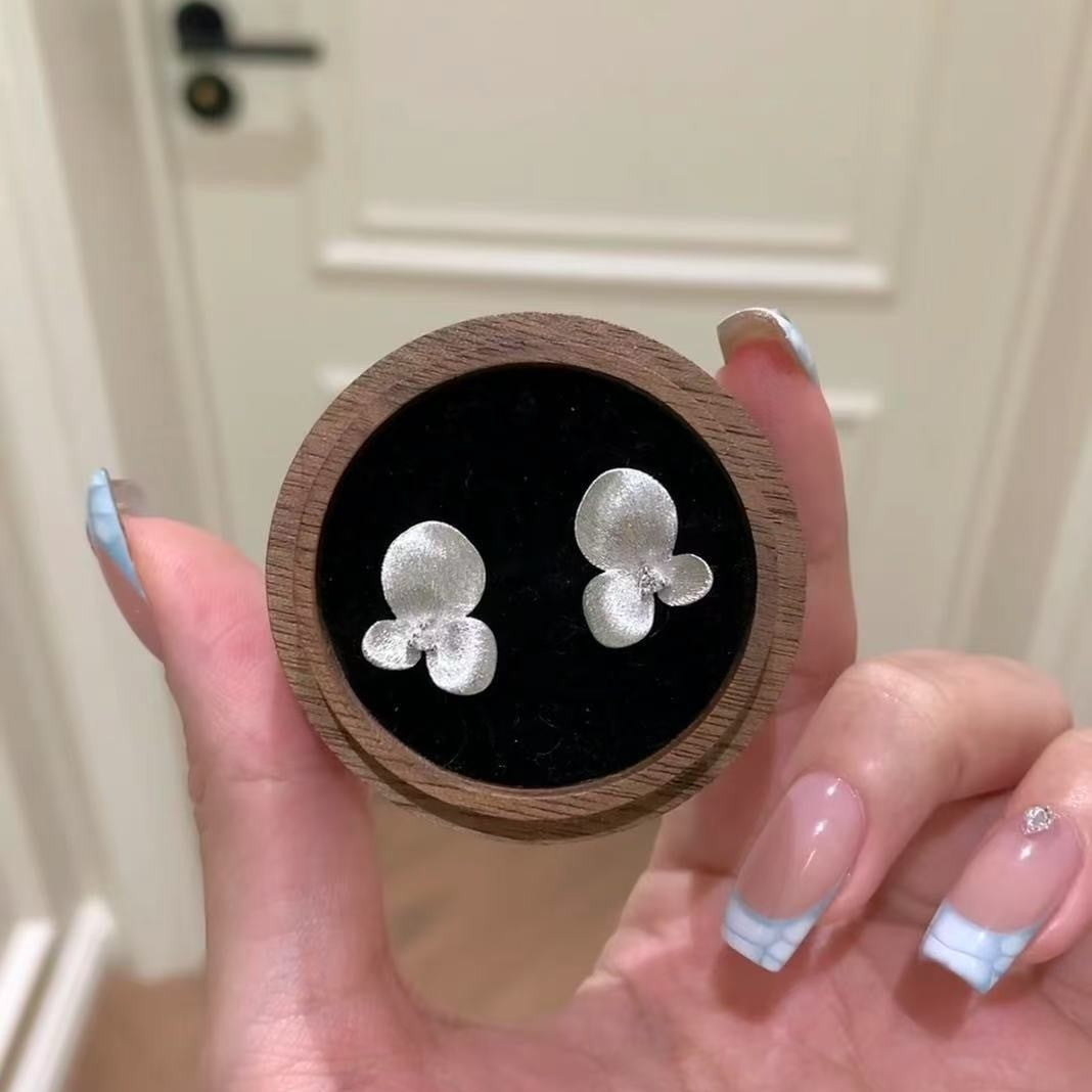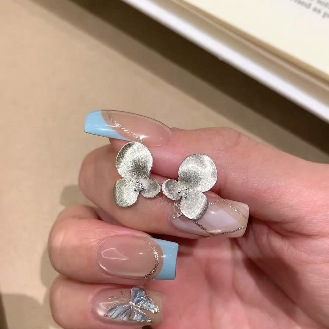 Brushed Craft Lily of the Valley Earrings with Diamonds, Elegant Fashionable Niche Three-Petal Flower, Exquisite Light Luxury Versatile