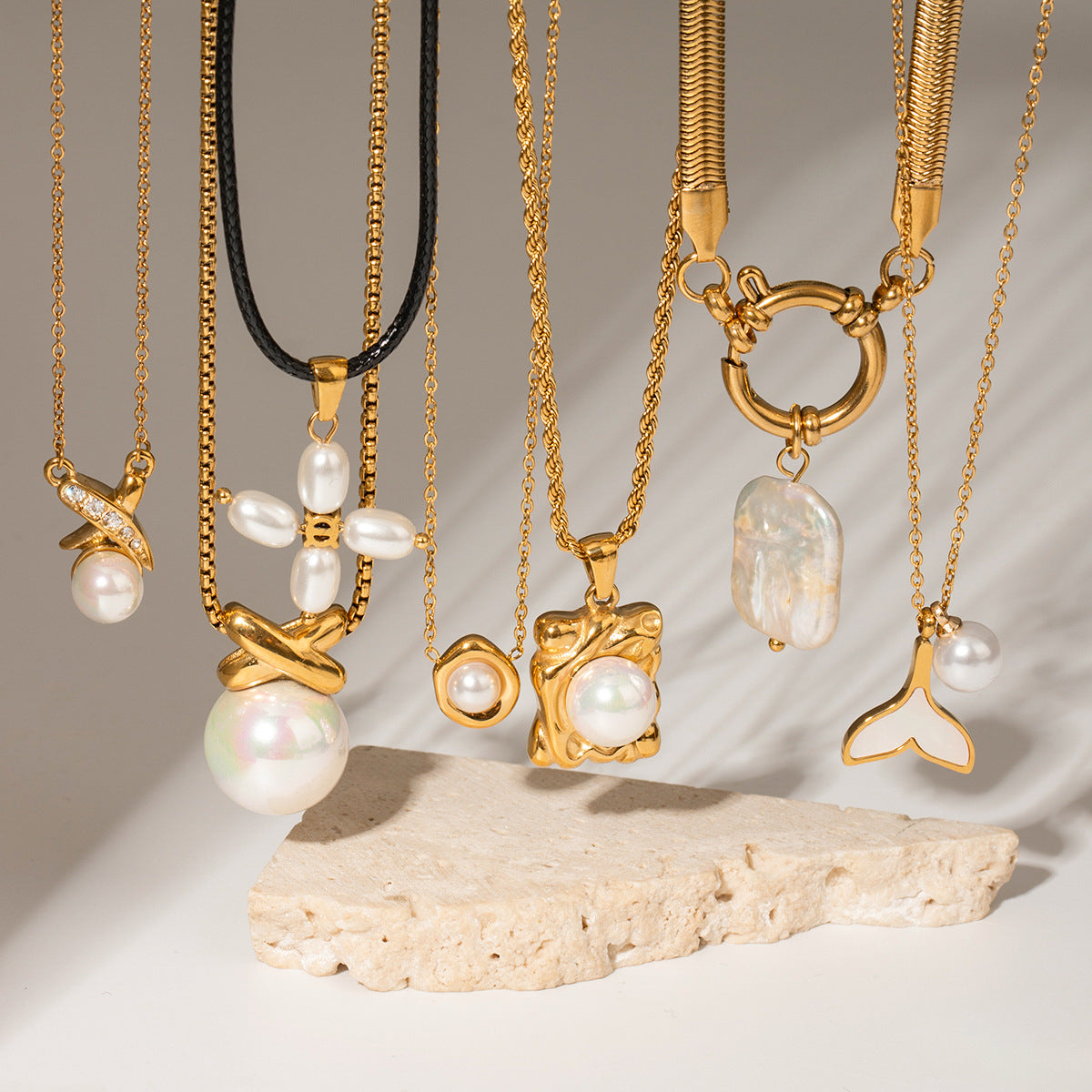 Stainless Steel Pearl Necklace High-end Jewelry Ins Collarbone Chain Titanium Steel Pendant for Women