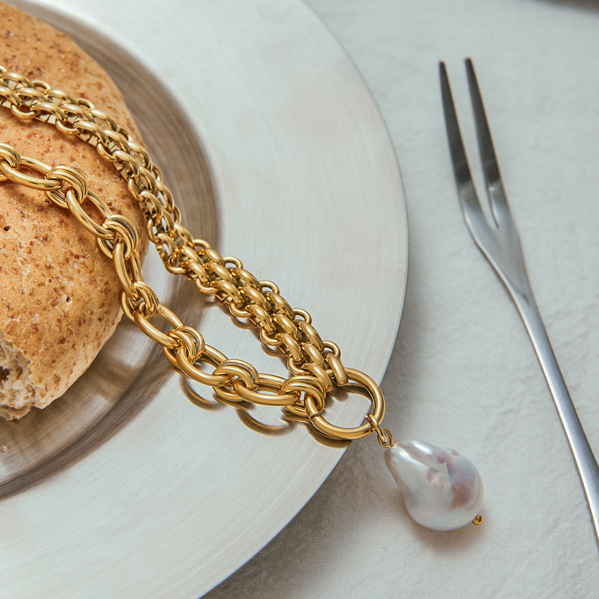 Stainless Steel Pearl Necklace Light Luxury High-end Clavicle Chain Non-fading Jewelry Titanium Steel Accessories