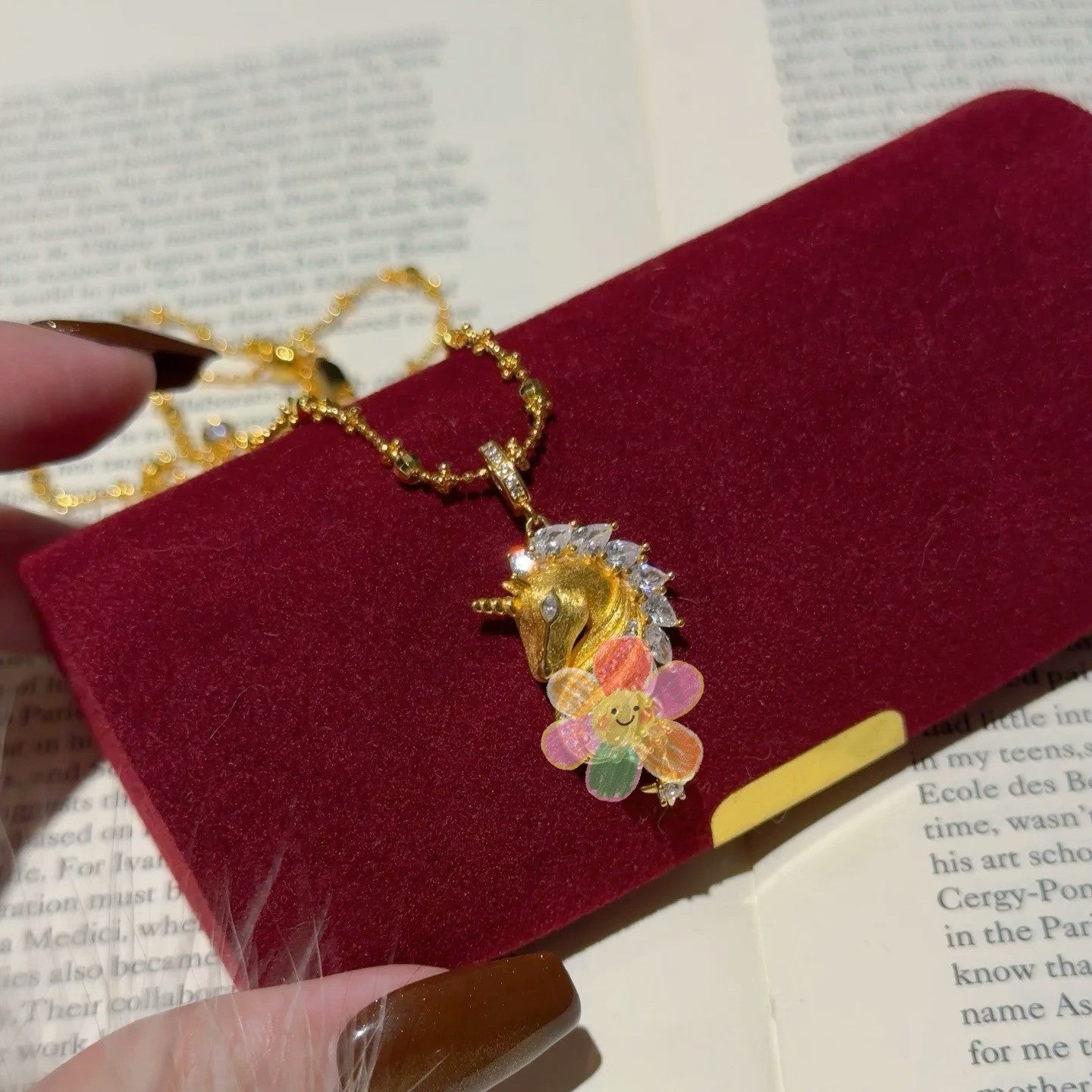 Pure Silver S925 Brushed Craft Unicorn Fairy Chain Light Luxury Niche Design High-end Versatile Collarbone Chain Necklace