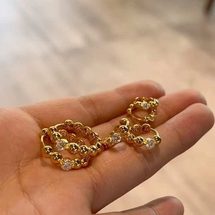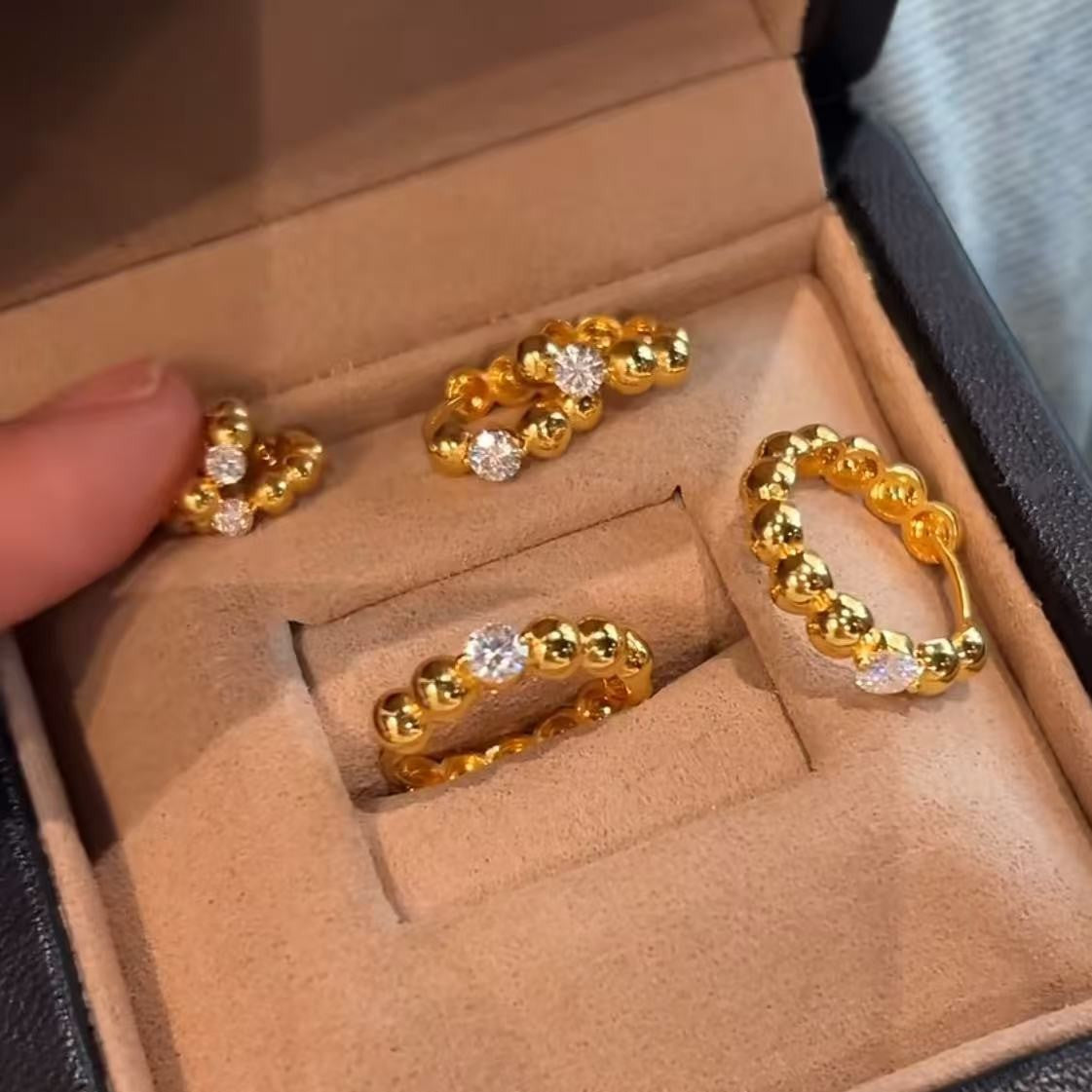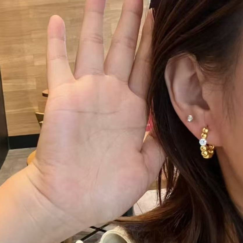 Pure Silver S925 Bubble Diamond Large Hoop Earrings French Light Luxury Niche Simple Ins Style Versatile Daily