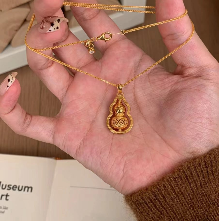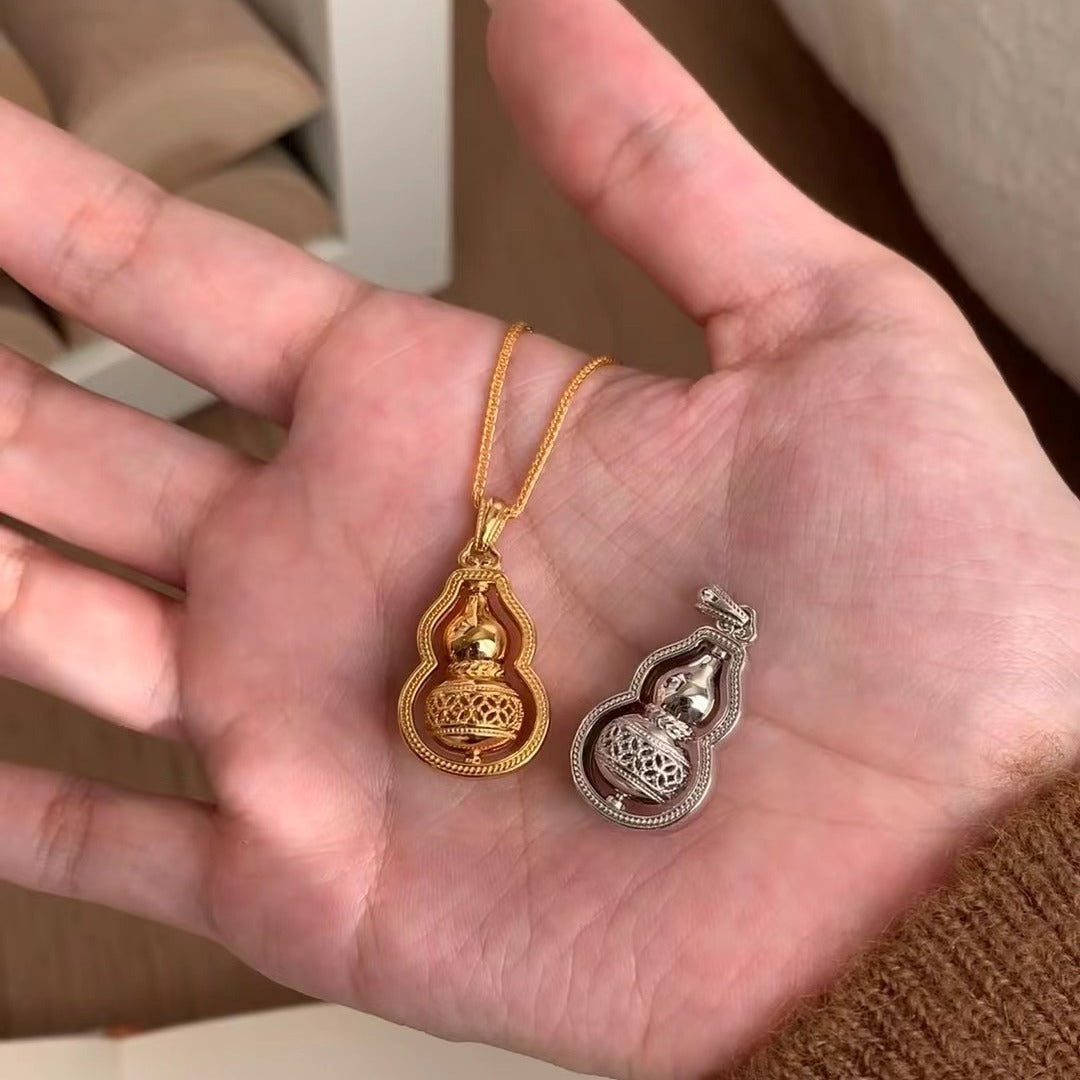 Pure Silver S925 Carved Gourd Rotatable Pendant Chinese Style Necklace for Women High-end Personality