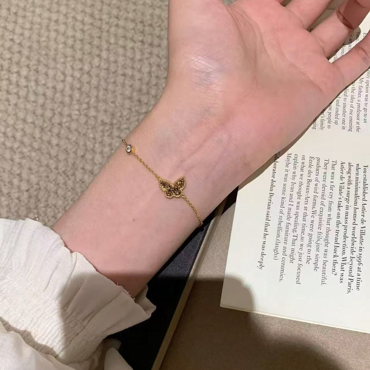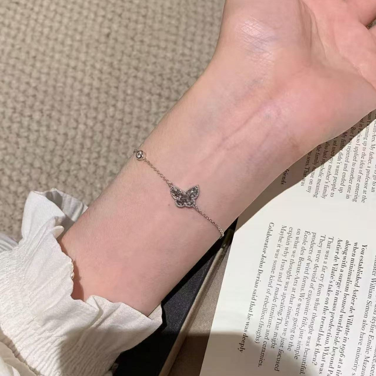 Pure Silver S925 CNC Craft Ice Butterfly Bracelet Light Luxury High-end Bracelet Elegant Socialite Style Versatile Temperament