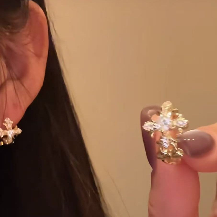 Pure Silver S925 Cross High Carbon Diamond Earrings Ear Clips Fashionable Ins Style Irregular Micro Pave Zircon Simple Versatile
