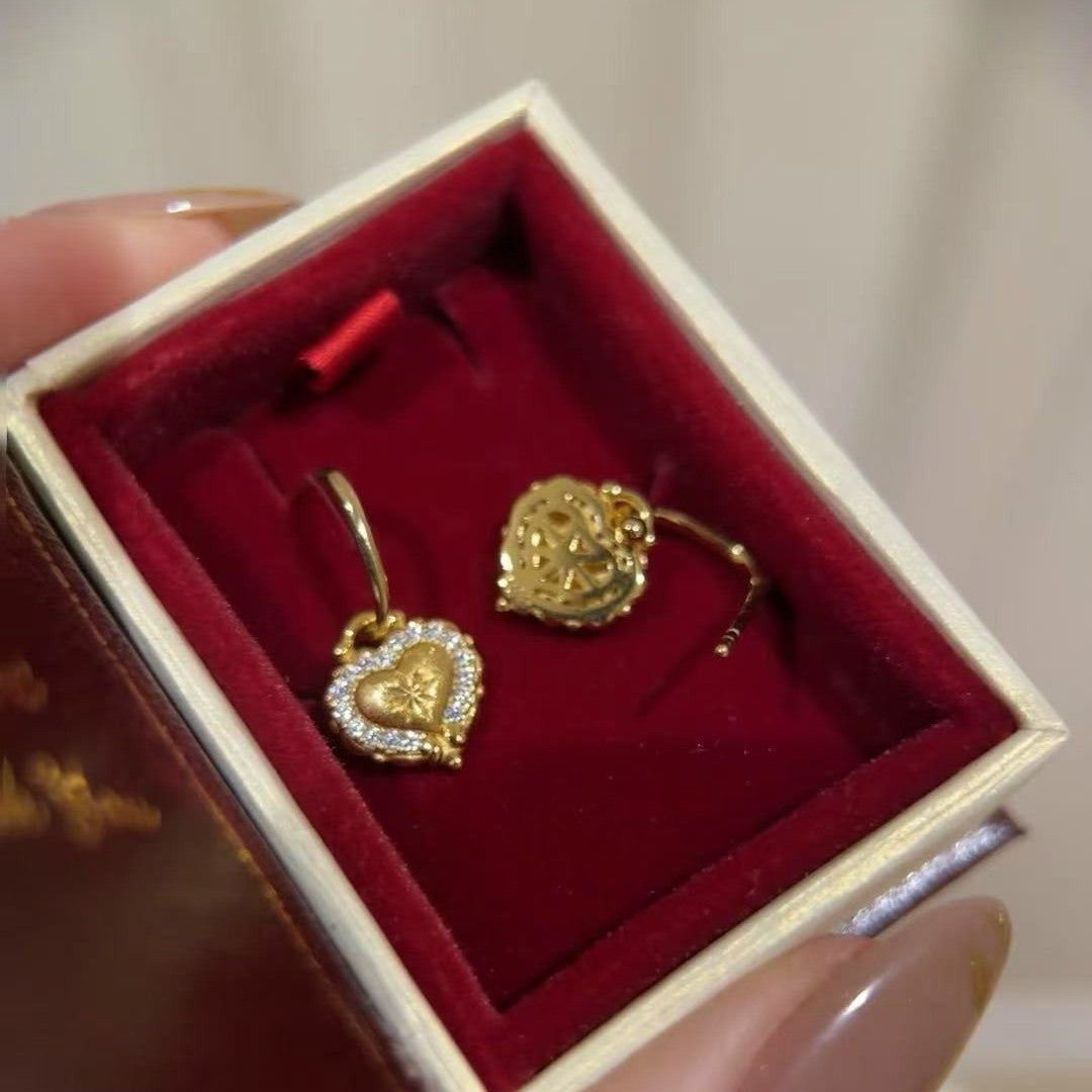 Pure Silver S925 Heart Brushed Craft Earrings Ear Hooks High-end Light Luxury Versatile Niche Stud Earrings