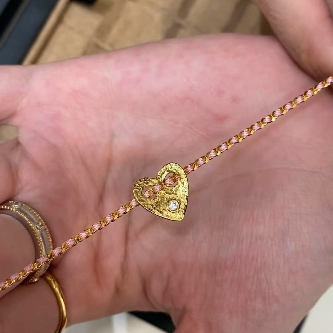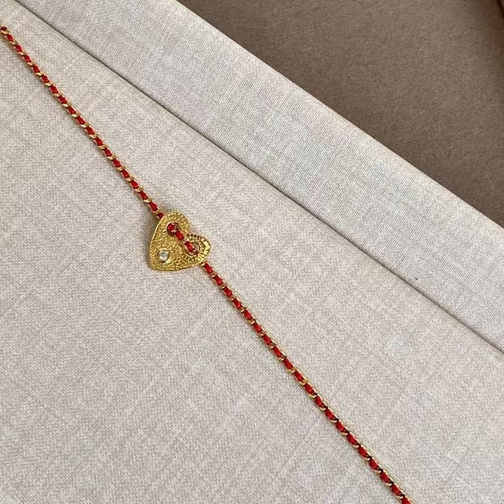 Sterling Silver S925 Heart-Shaped Love Braided Pink Red Rope Bracelet Valentine's Day Gift