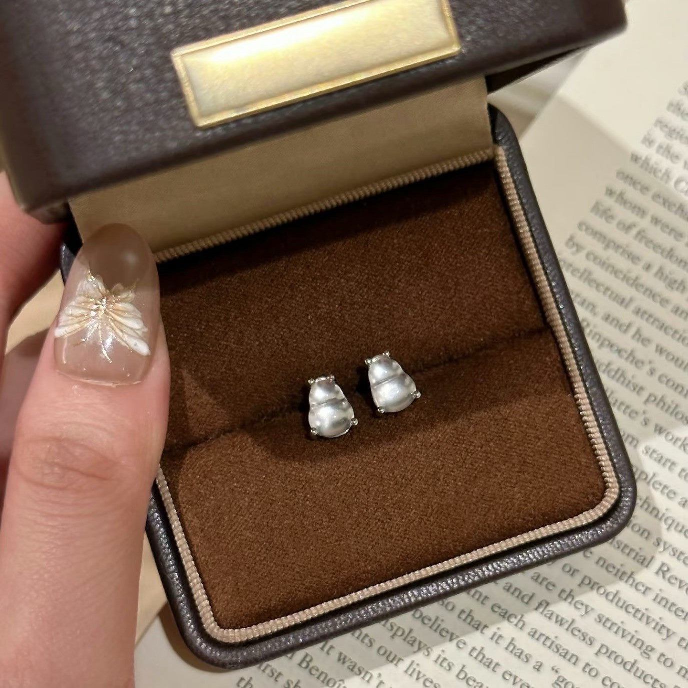 Pure Silver S925 Natural Water Foam Jade Gourd Earrings Light Luxury High-end Simple Versatile Earrings