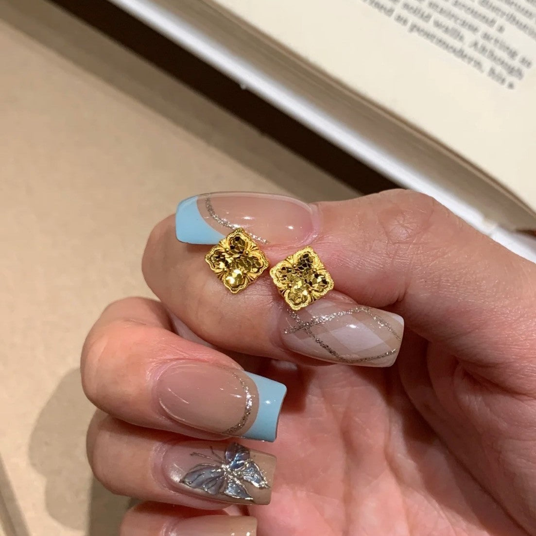 Pure Silver S925 Traditional Style CNC Craft Ice Stud Earrings Light Luxury High-end Elegant Exquisite Stud Earrings