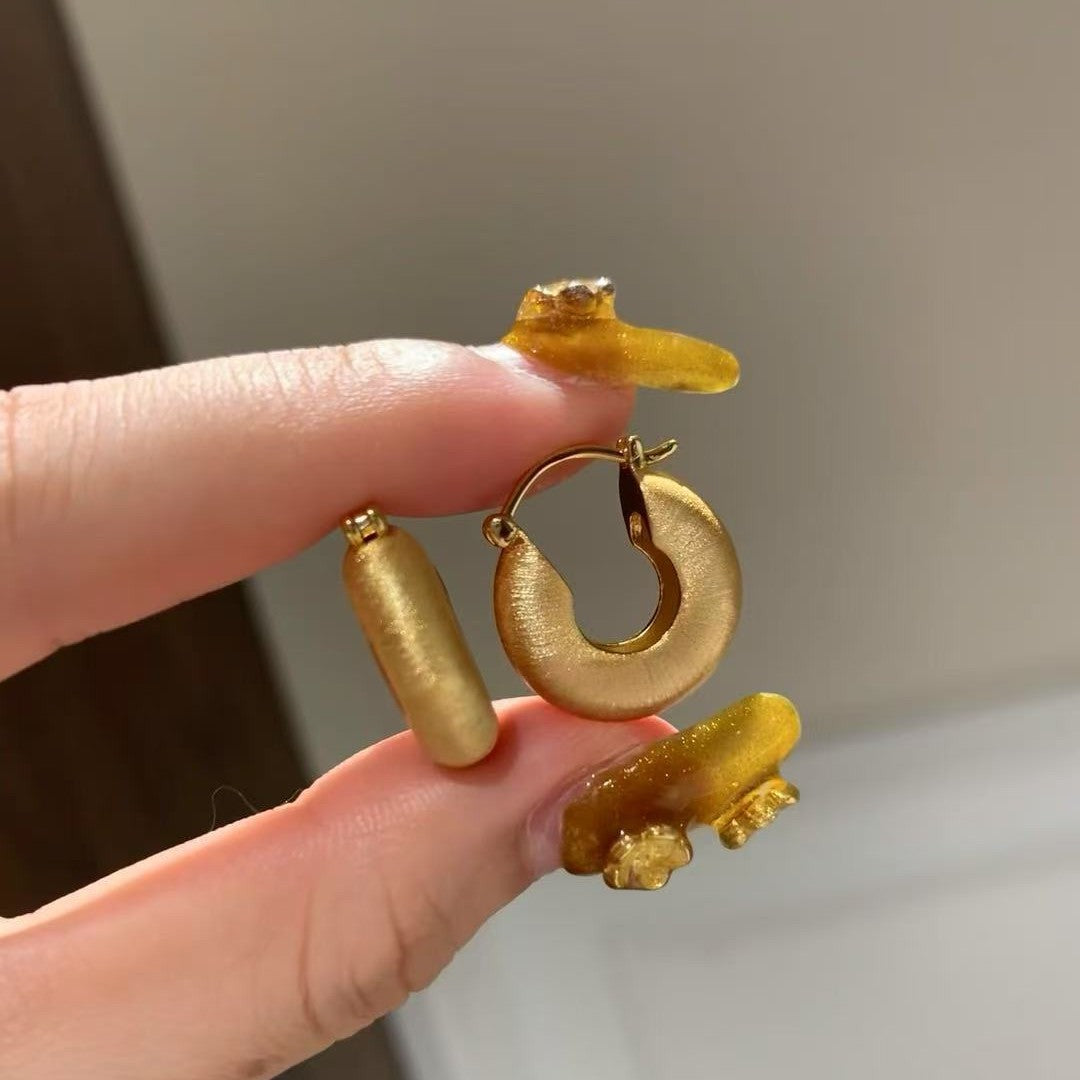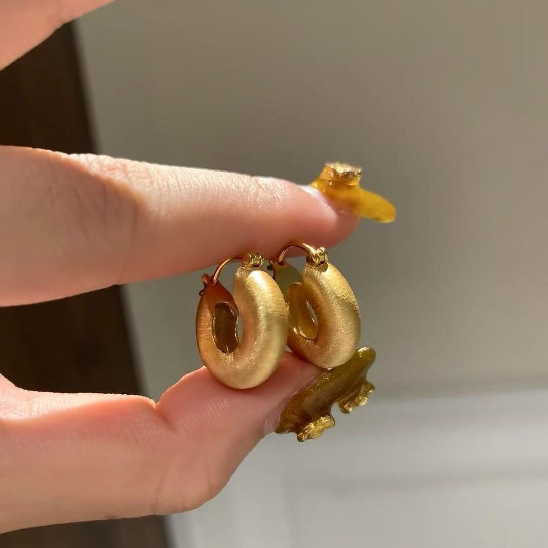 Vintage Style Brushed Craft Bagel Earrings Pure Silver S925 Light Luxury High-end Versatile