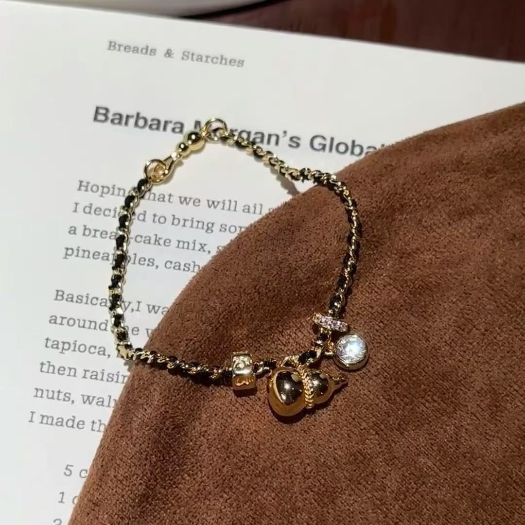 925C Sterling Silver Black Gold Braided Gourd Bracelet Fulu Fashion Exquisite High-end Versatile Bracelet