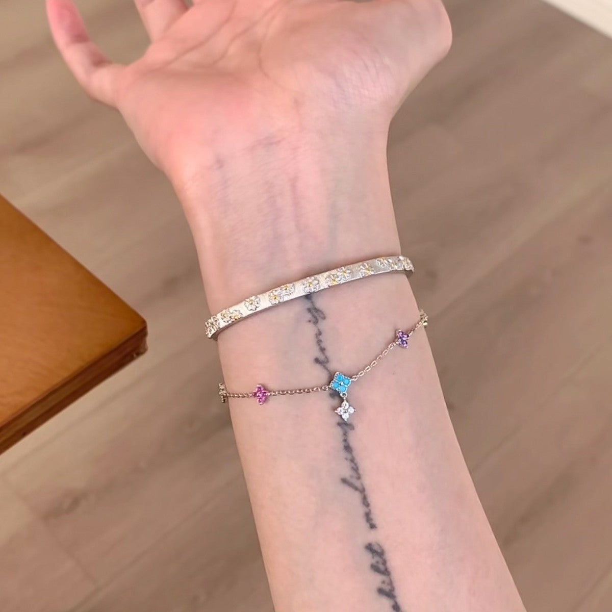 925 Sterling Silver Summer Dopamine Colorful Four-Leaf Clover Bracelet Fashion Light Luxury Ins Niche Design