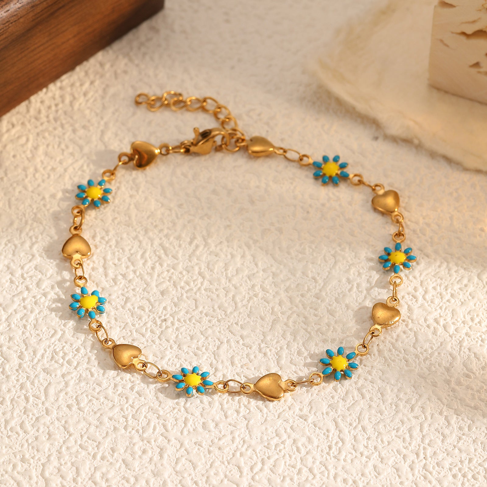 Stainless Steel Oil Drop Daisy Necklace for Women Versatile Titanium Steel Non-Fading Bracelet Jewelry Flower Accessories