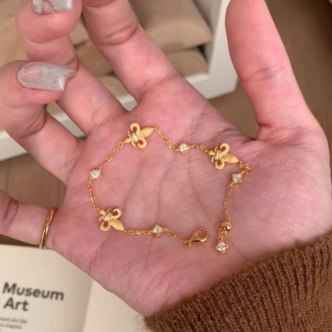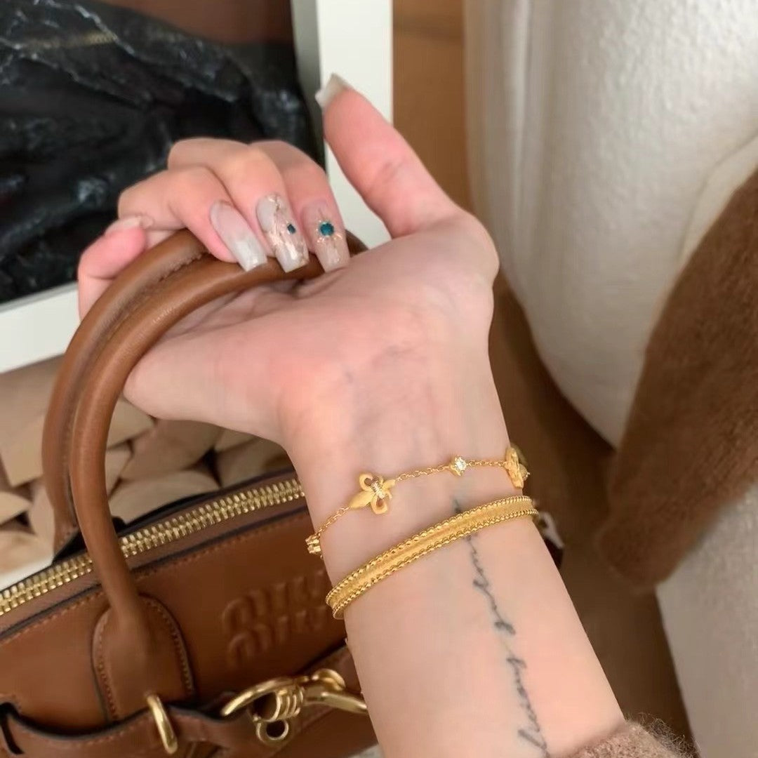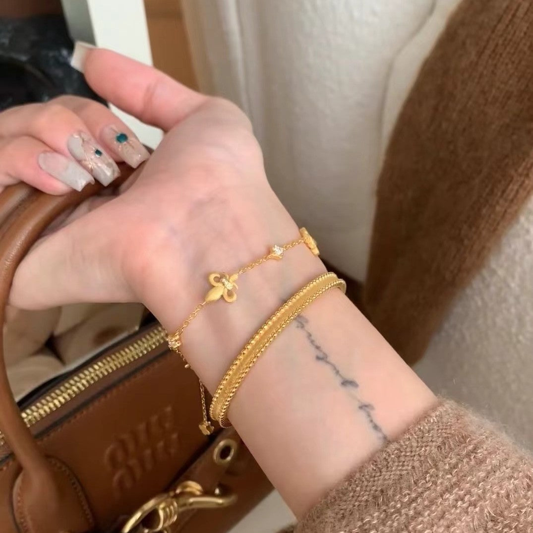 Italian Vintage Brushed Light Luxury High-End 925 Sterling Silver Iris Flower Brushed Reversible Push-Pull Bracelet