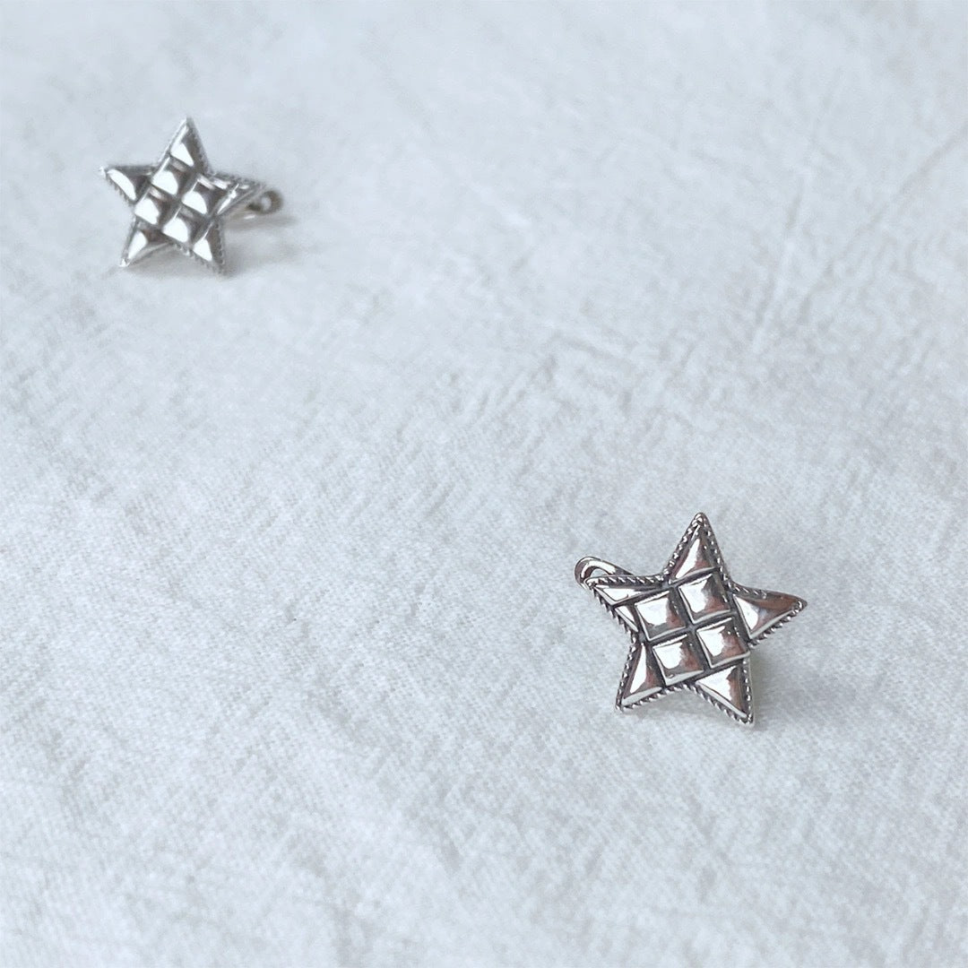 Korean Style S925Sterling Silver Five-Pointed Star Earrings Ear Clips for Women Vintage Distressed Fashion Simple Star