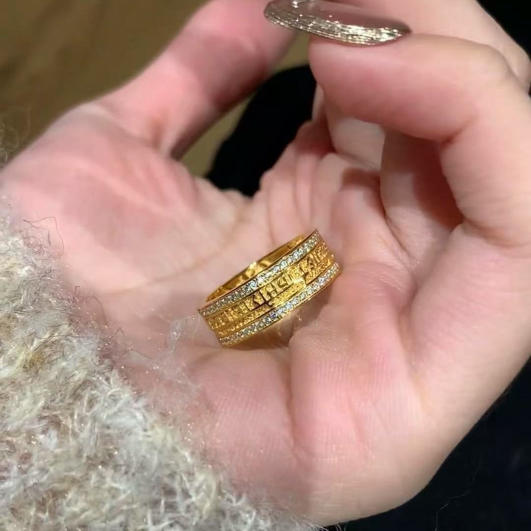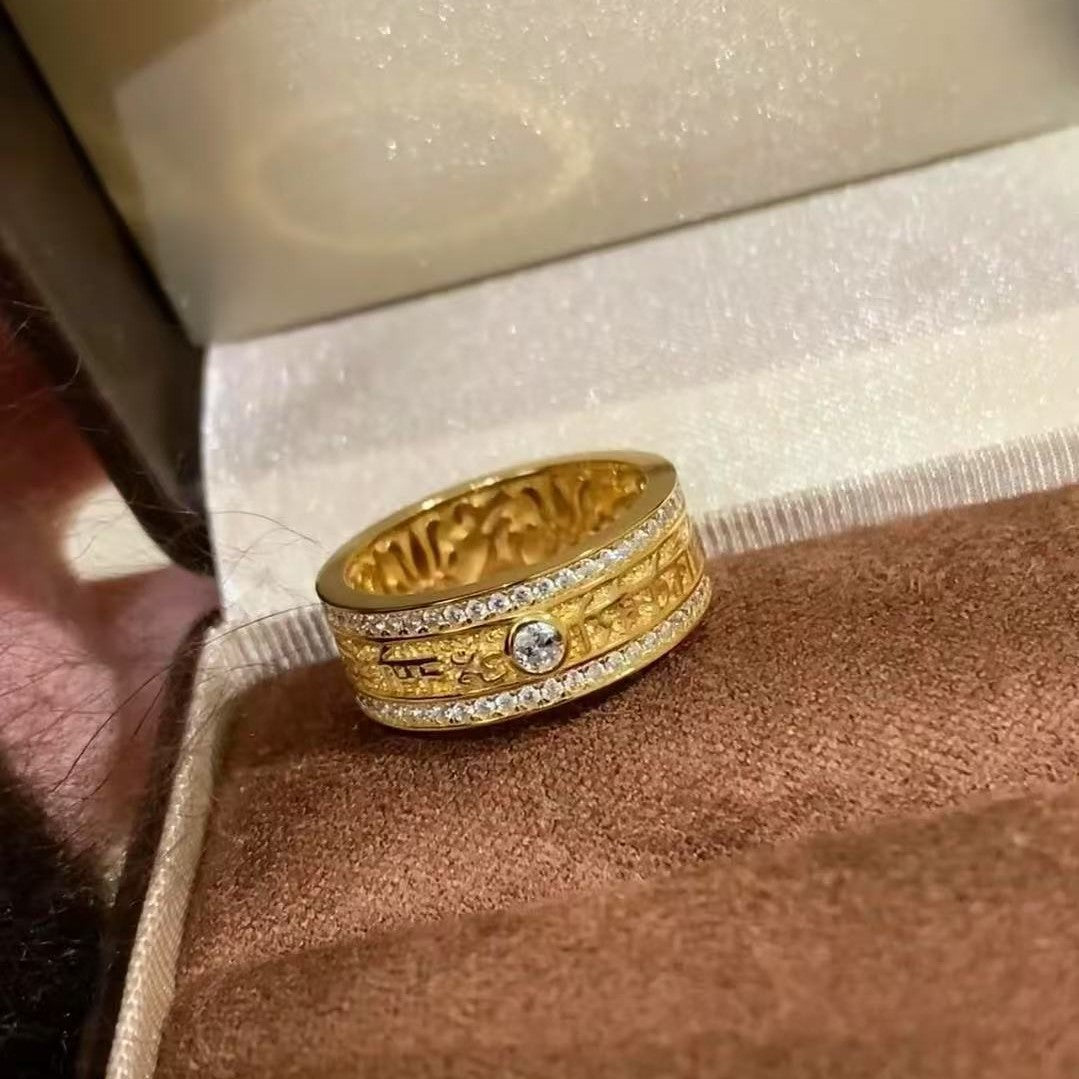New Niche Design Personality Retro Green Tara Ring Light Luxury Elegant High-end Ins Style Versatile High Appearance Value for Women