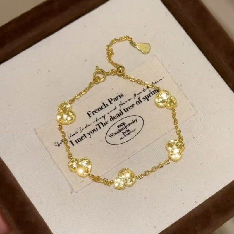 Sparkling Buchi Style Flashing CNC Crushed Ice Five-Flower Gourd Bracelet, Adjustable Length