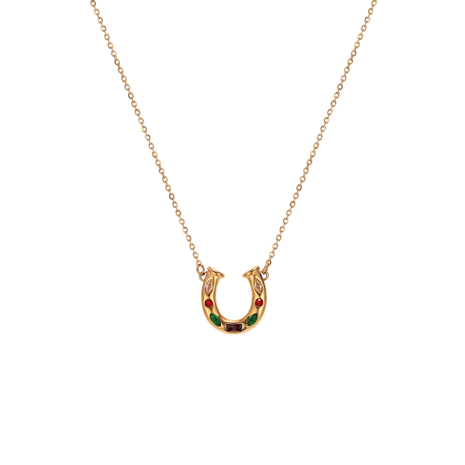 Stainless Steel gold Lucky Horseshoe U-Shaped Necklace Rainbow Element Kaleidoscope Lucky Symbol Inlaid Diamond Collarbone Chain for Women Color Retention