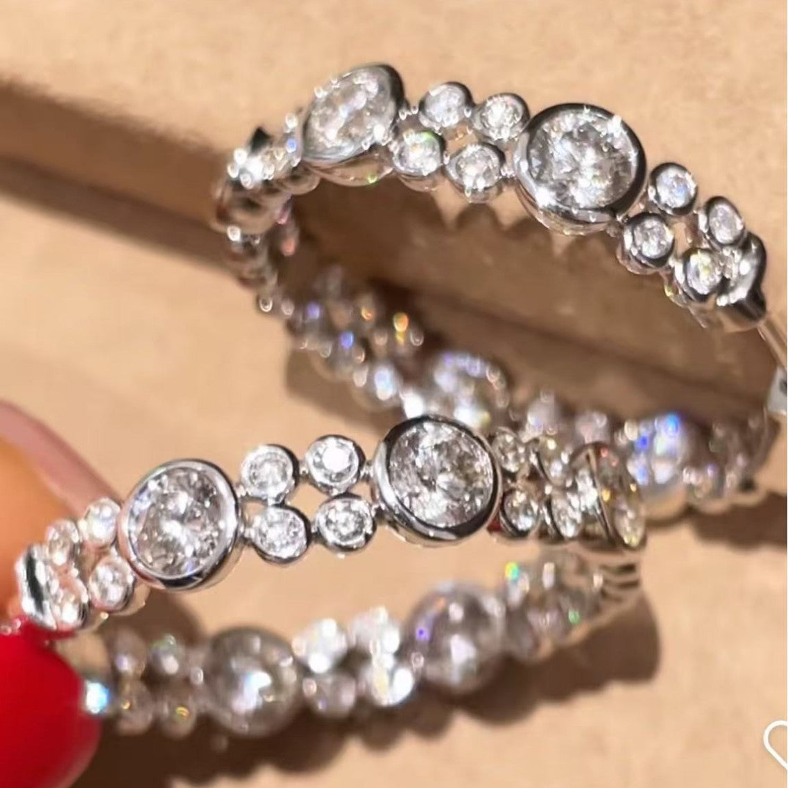 Pure Silver S925 Bubble Diamond Large Hoop Earrings Trendy Light Luxury Single Item Fashionable Personality Earrings Niche Ins Style Versatile