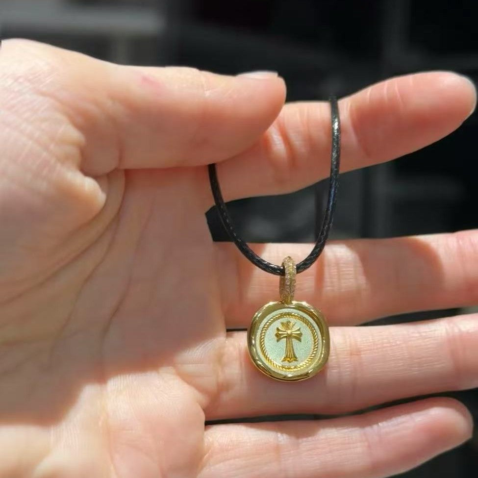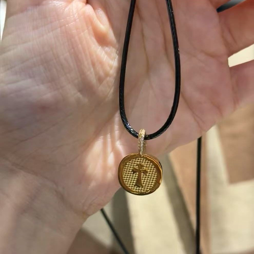 Pure Silver S925 Cross Double-Sided Wear Unisex Couple Style Black Rope Necklace Exquisite and Simple