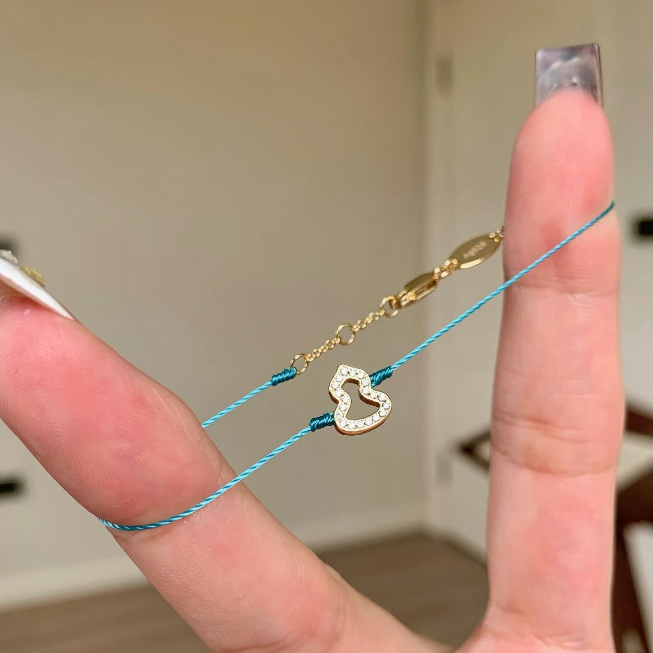 Pure Silver S925 Good Luck Gourd Full Diamond Hollow Woven Rope Bracelet Light Luxury Bracelet for Women Fashionable Versatile Simple