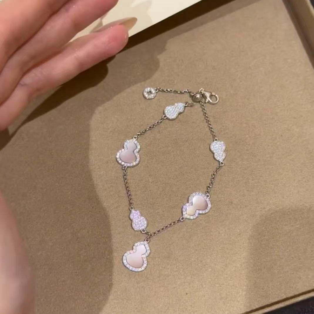 Pure Silver S925 Gourd Fortune Pink Mother-of-Pearl Bracelet Luxurious Whitening High-End Small Gourd Bracelet