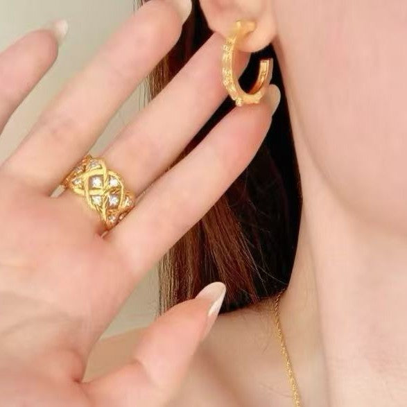 Pure Silver S925 Italian Brushed Craft Family Style Earrings Light Luxury Retro Palace Style Niche High-end Earrings