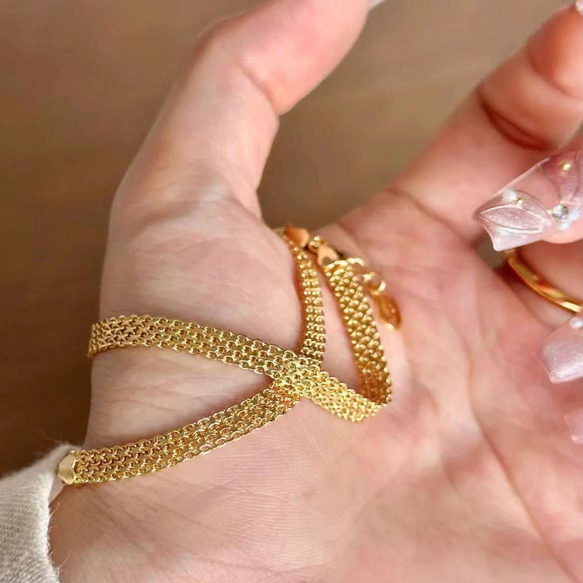 Pure Silver S925 Light Luxury Style High-end Lace Tank Chain Bracelet Layered Wear Style Niche Versatile