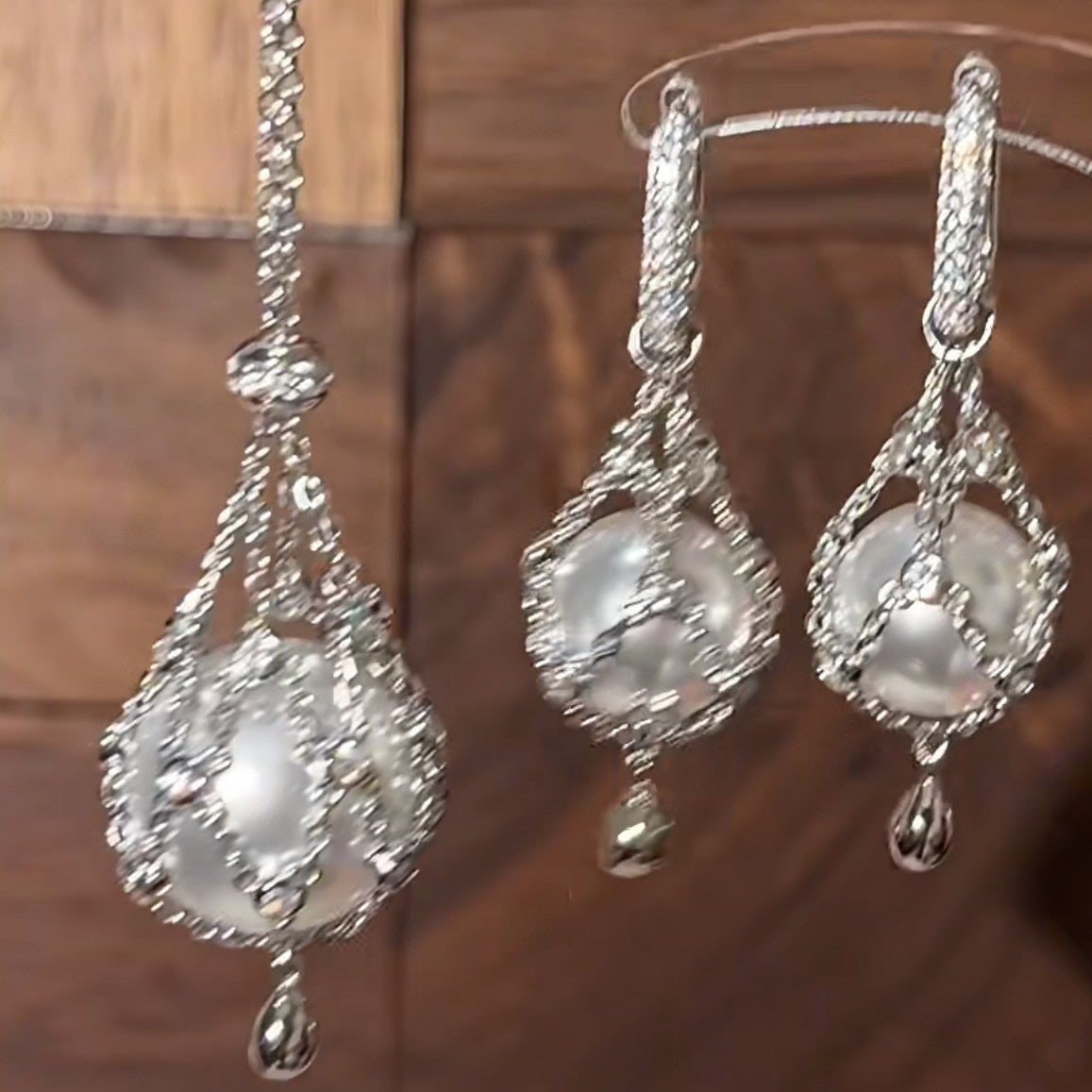 Pure Silver S925 Net Pocket Double A White Crystal & Swarovski Pearl Earrings Light Luxury High-end Earrings Fashion Ins Style Elegant