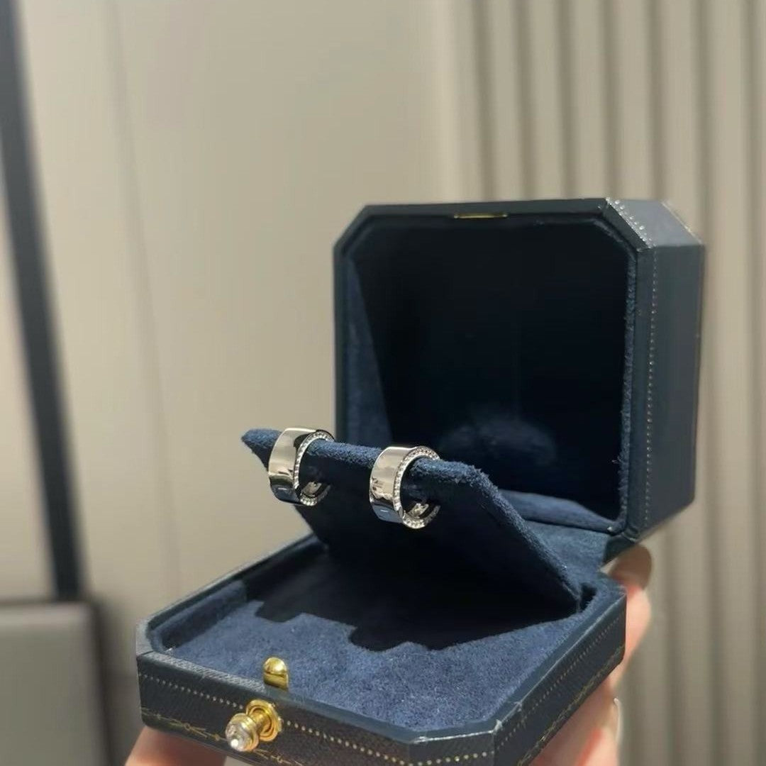 Pure Silver S925 Micro Inlaid Full Diamond Round Single Row Trendy Earrings Personality Cool High-end Exquisite Fashion