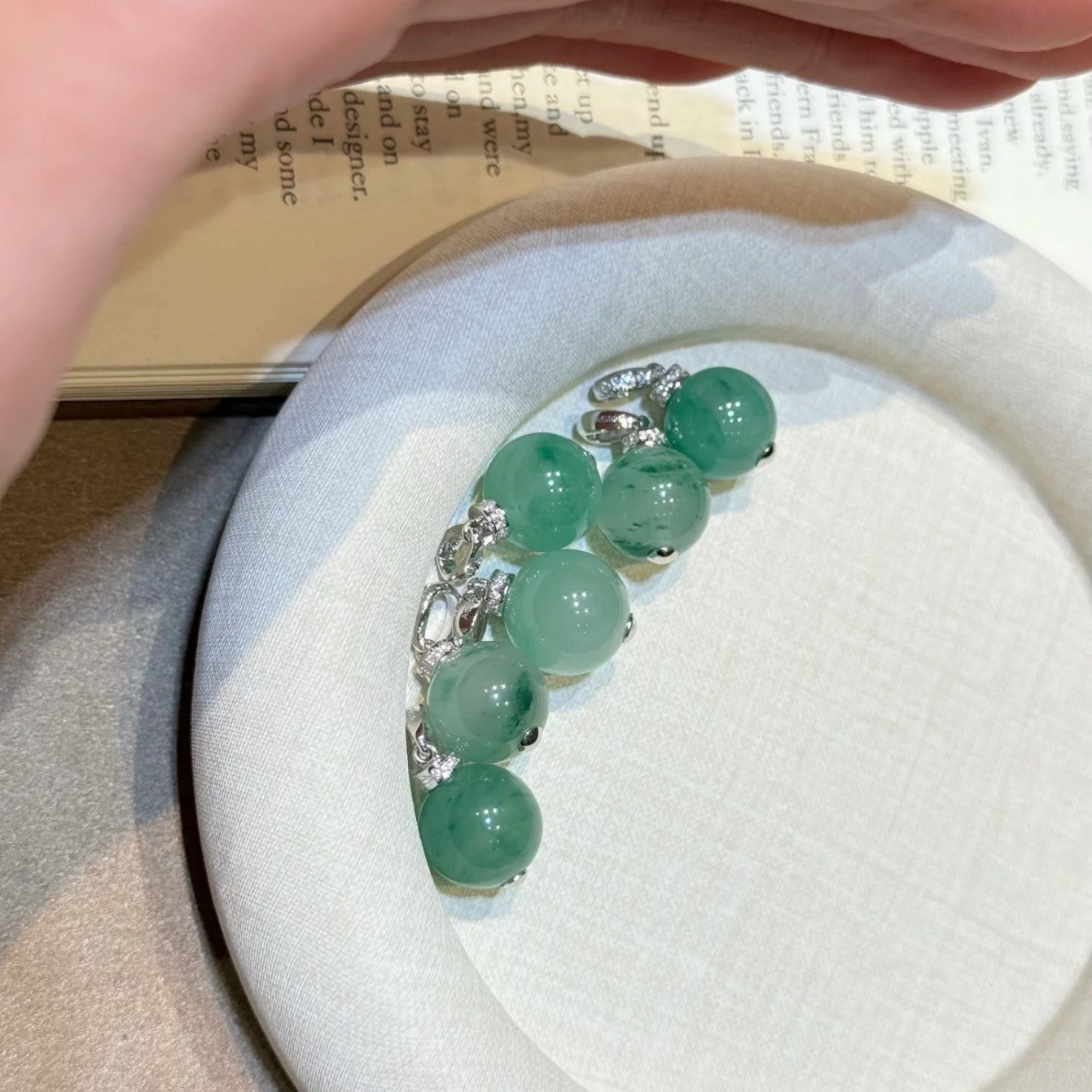 Pure Silver S925 Natural African Emerald Necklace Dragon Jade Round Bead Pendant Collarbone Chain High-end Niche Exquisite Light Luxury