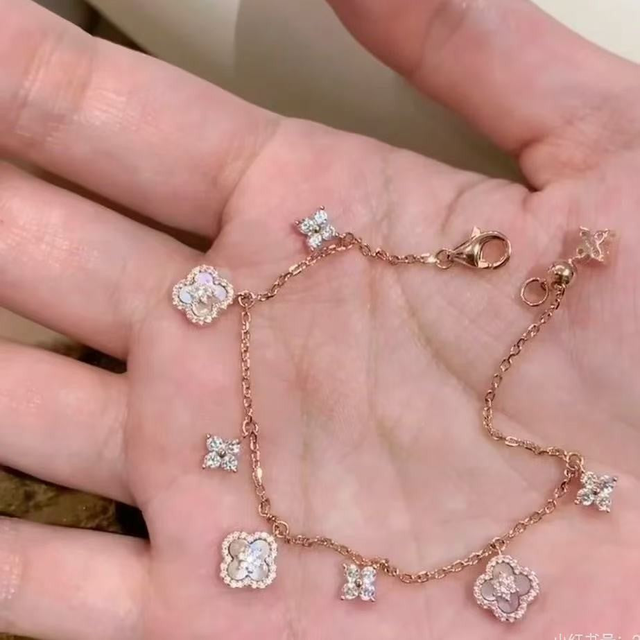 Pure Silver S925 Natural Pink Shell Four-Leaf Clover Bracelet Fashion Simple Commuting Wristband Niche High-End Feel Jewelry for Women
