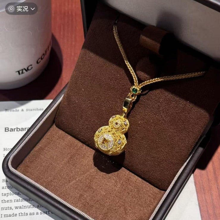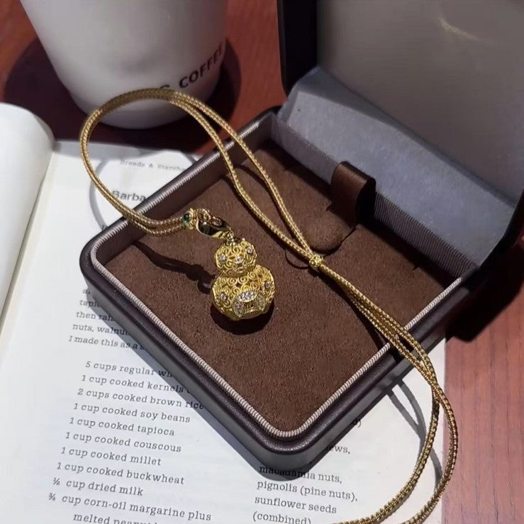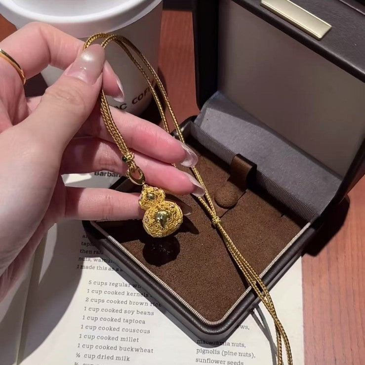Sterling Silver S925New Chinese Style National Style Filigree Gourd Brown Rope Sweater Chain Light Luxury Fashion Versatile High-end Palace Style