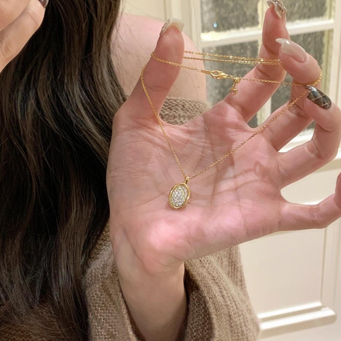 Pure Silver S925 Vintage Style High Carbon Diamond Minimalist Necklace and Earring Set Sparkling Light Luxury High-end