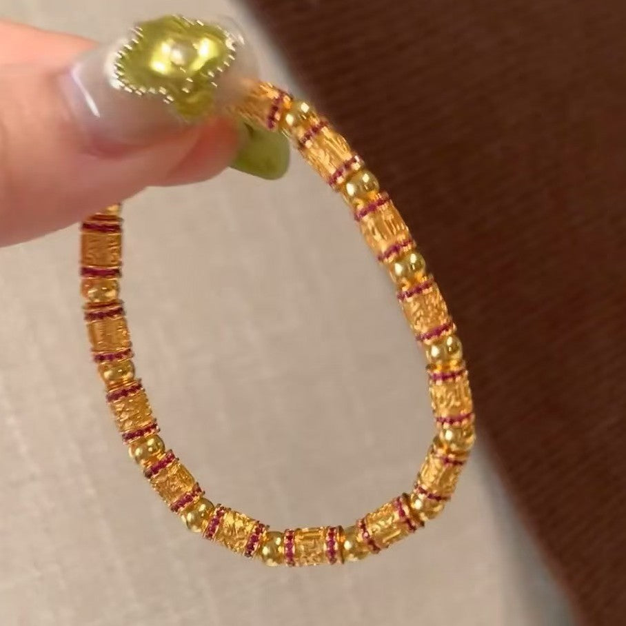 Pure Silver S925 Cultural Play Zodiac Year Red Bracelet Elastic Cord National Style Light Luxury Fashion Versatile Bracelet