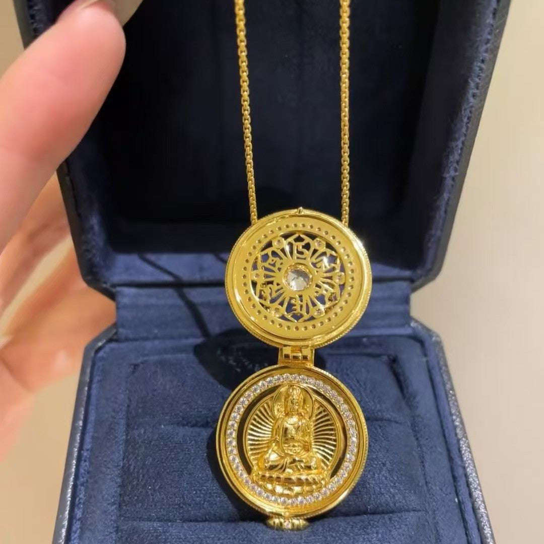 Traditional Compass Inlaid with Diamonds Pure Silver S925 Gawu Box Compass Manjushri Pure Silver Sweater Necklace