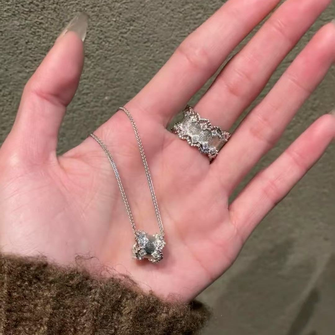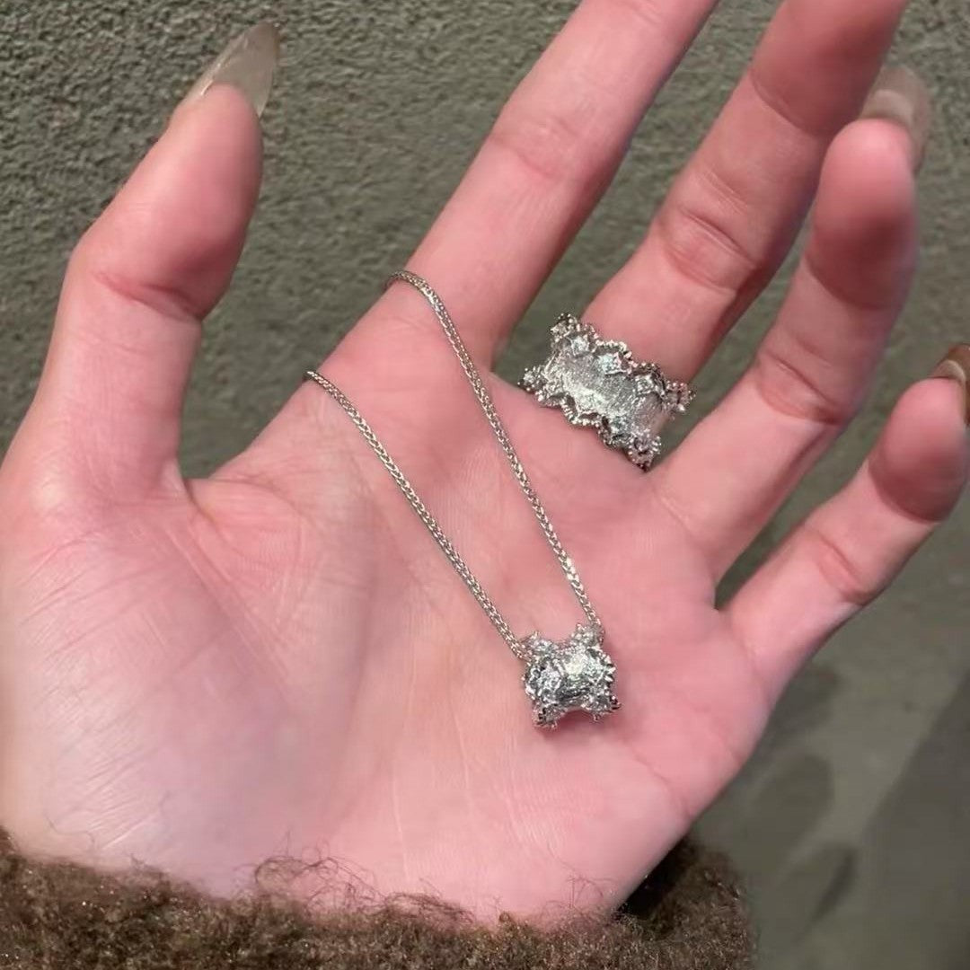 Vintage Buchi Style Brushed Craft Passepartout Necklace High-end Design Light Luxury Personality Versatile Fashion