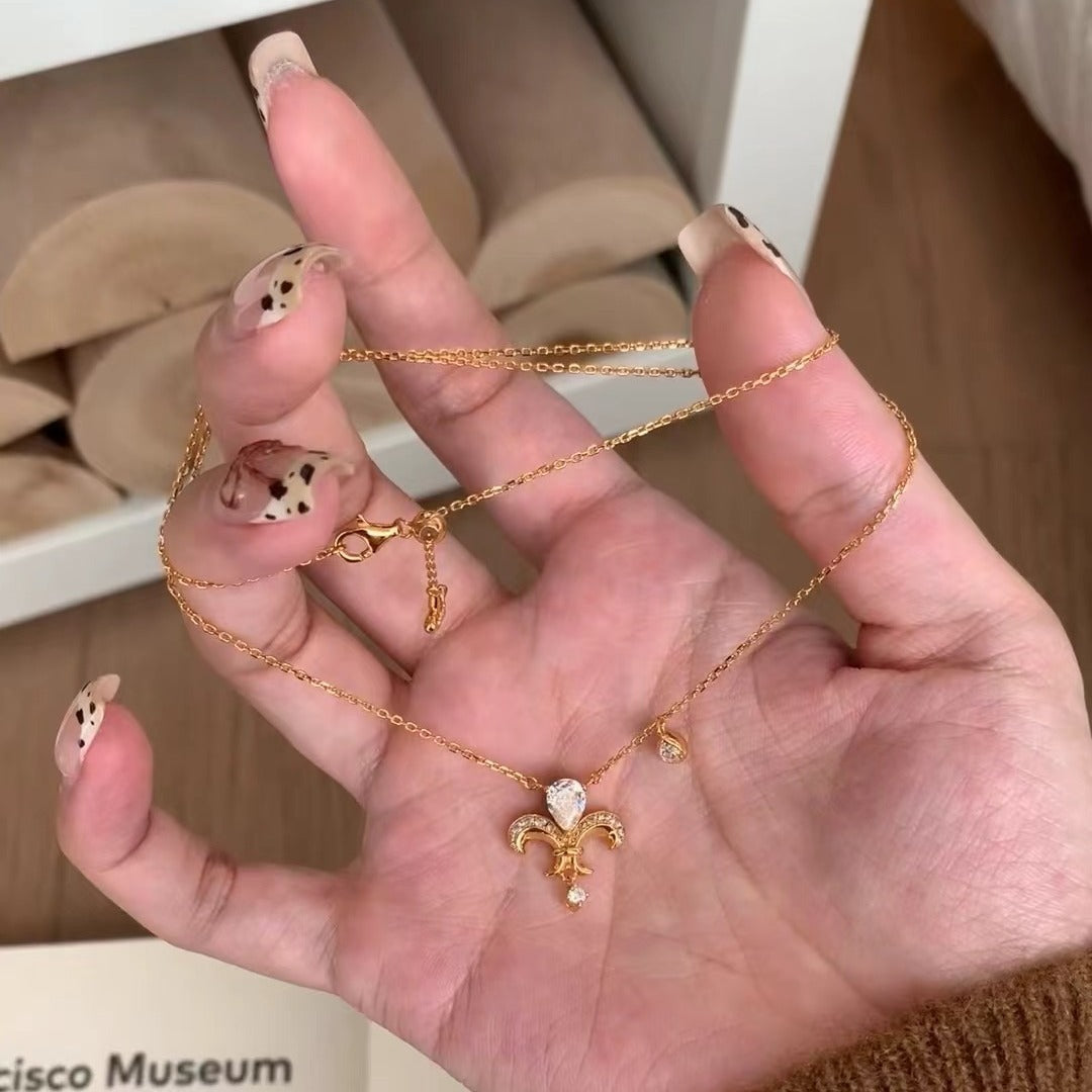 Vintage Style Pure Silver S925 Real Gold Plated High Carbon Diamond Brushed Craft Iris Flower Push-Pull Adjustable Necklace